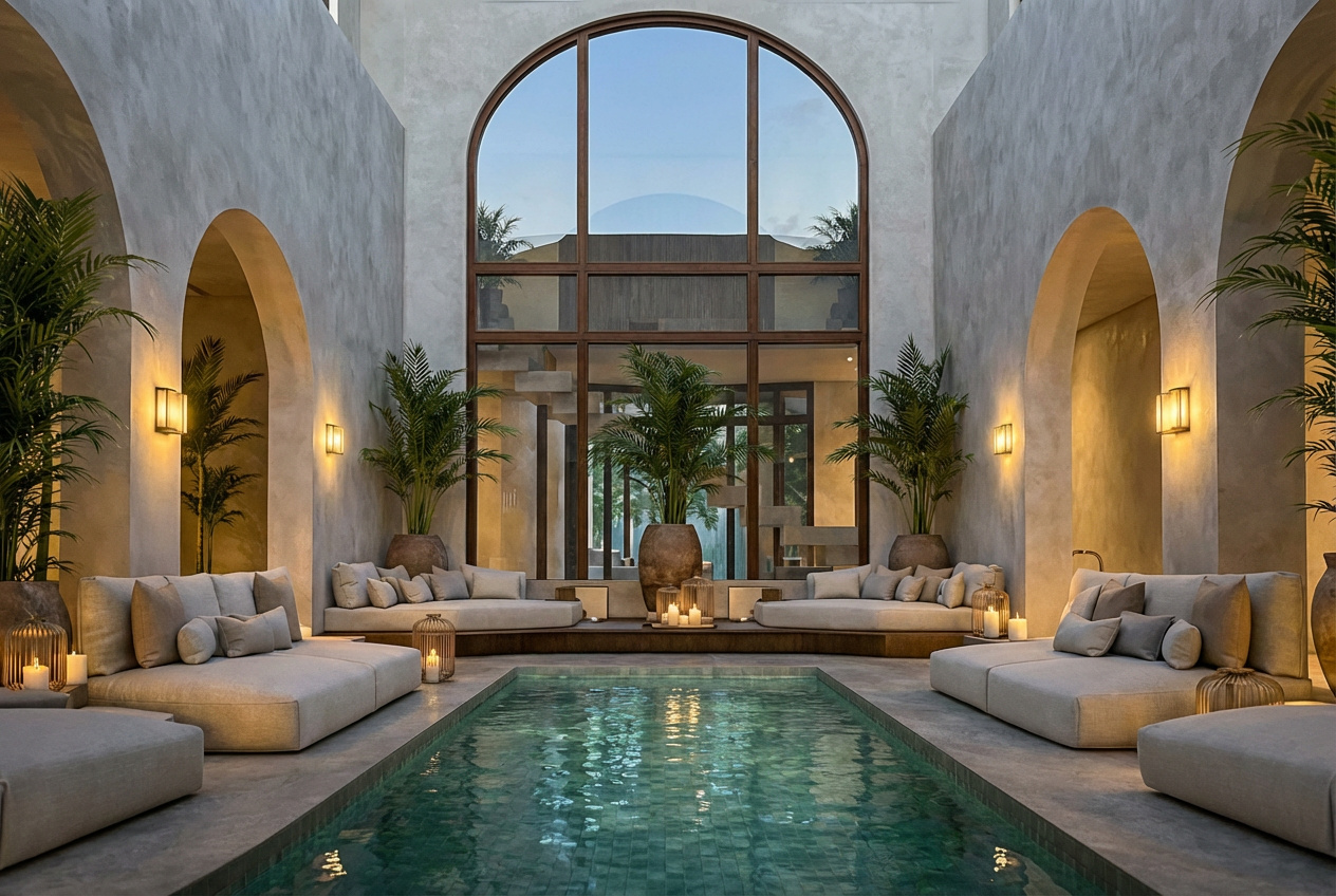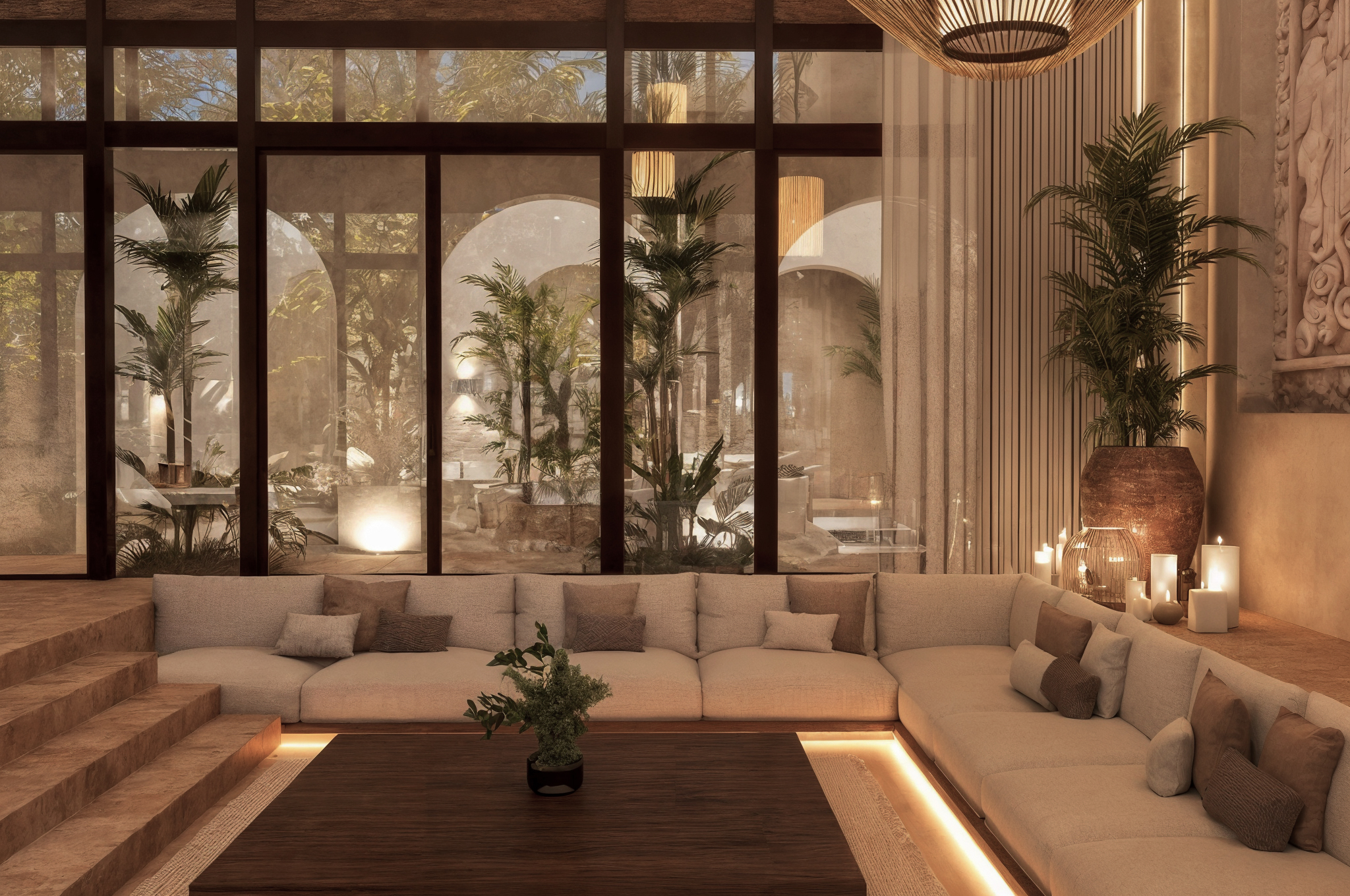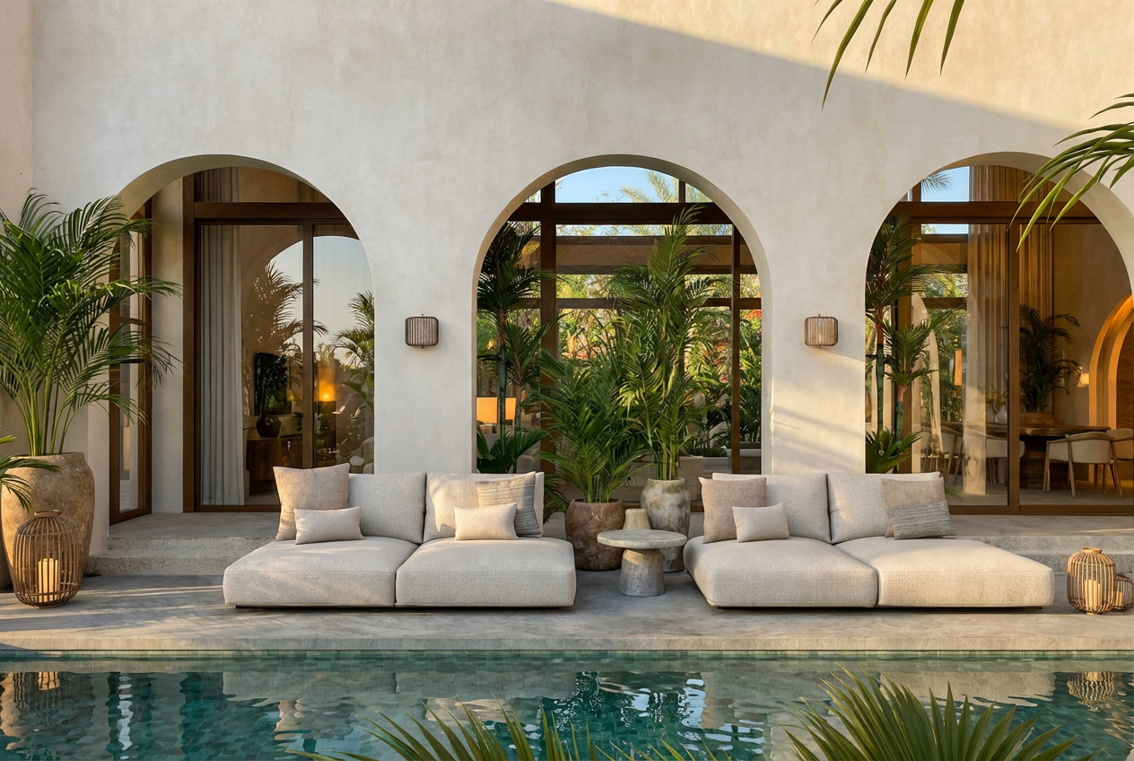 À travers des formes sculpturales, des matériaux naturels et des références subtiles au patrimoine ancestral, cette villa incarne profondeur et authenticité tout en conservant une sophistication contemporaine. Une résidence ancrée dans l'identité et le caractère.
