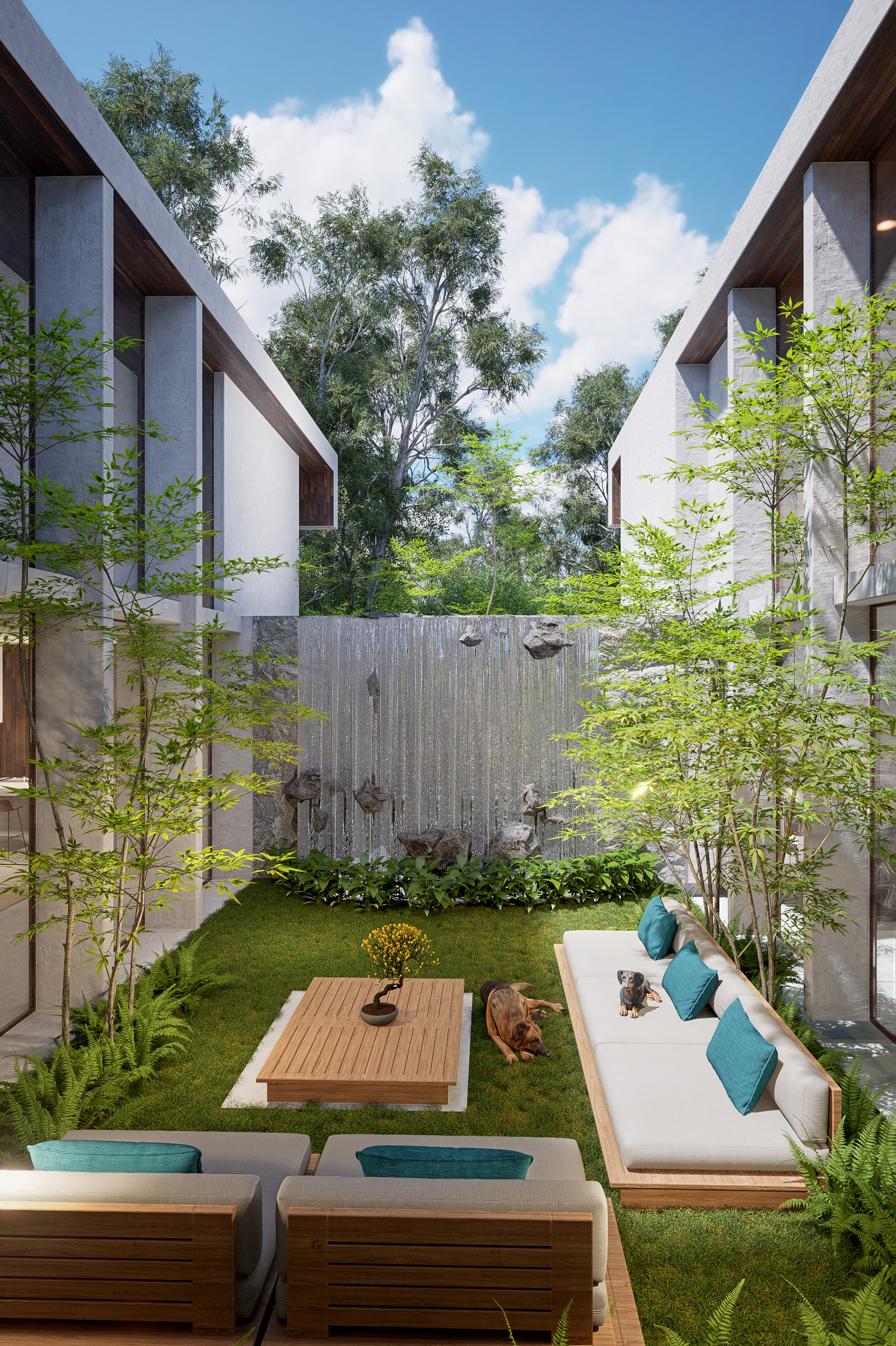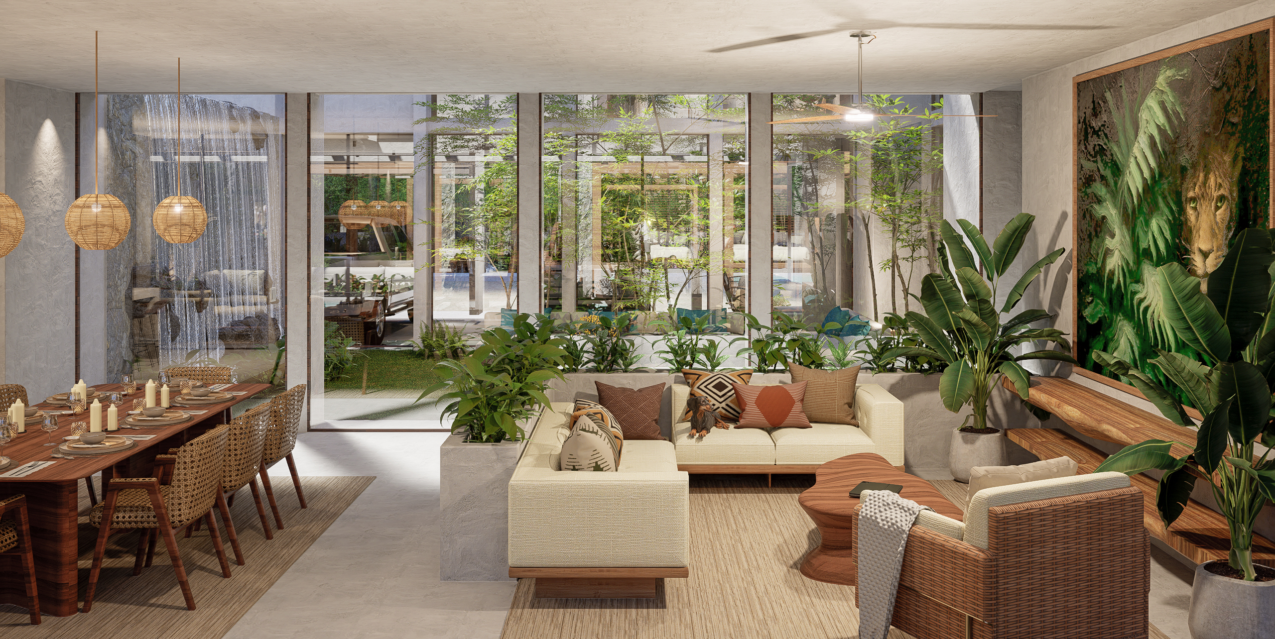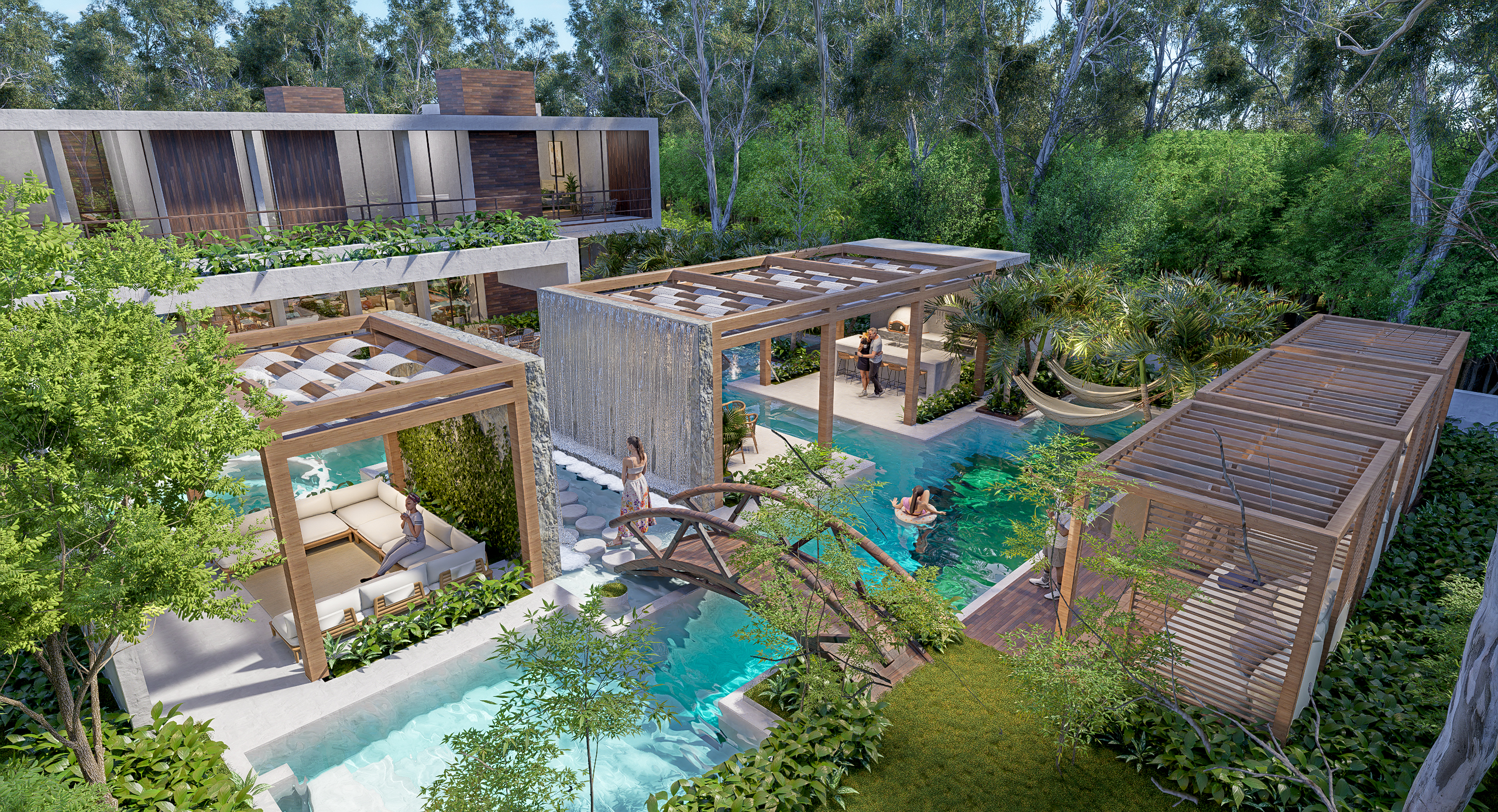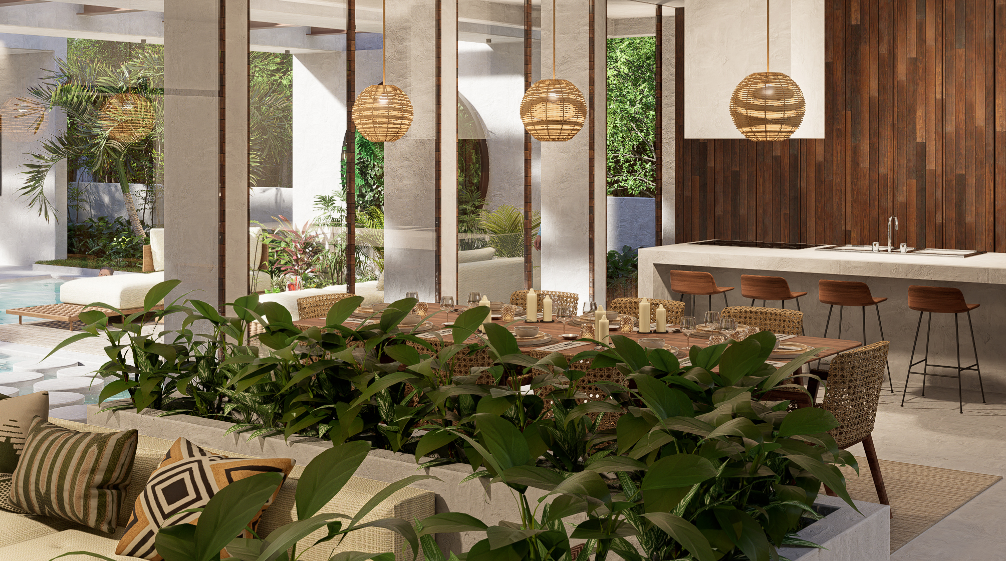 Au-delà des murs de votre villa, le domaine déploie une constellation de commodités d'exception — club de plage, pavillons de yoga, potager biologique, sentiers de contemplation et accès aux cénotes voisins. Chaque espace prolonge l'art de vivre de votre résidence et célèbre la nature singulière de Tulum.
